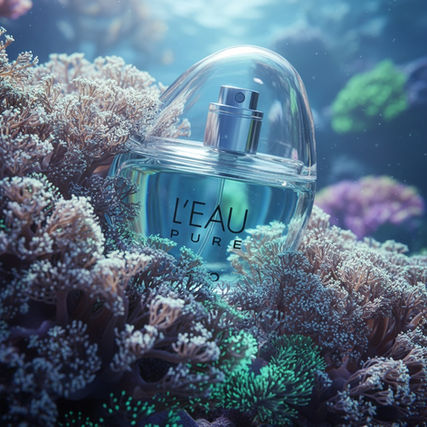 Prueba publicitaria para Kenzo. Simulación de arrecifes realistas generados con Inteligencia Artificial.
